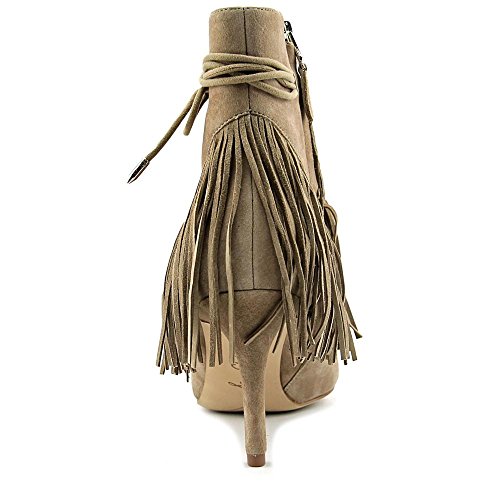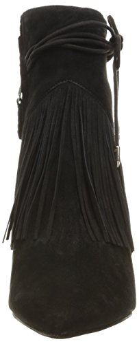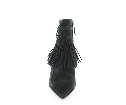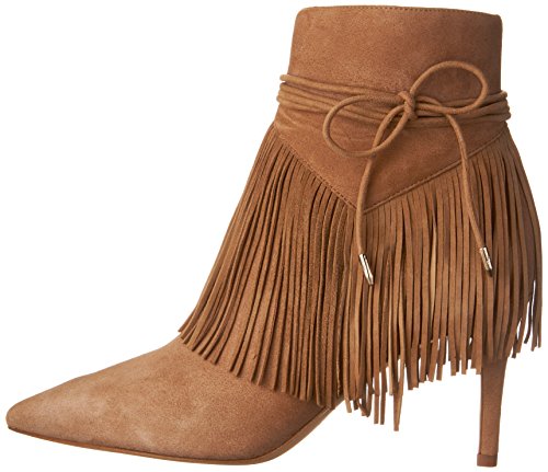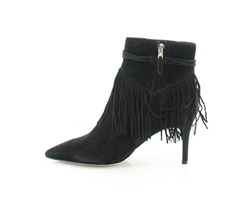 Product DescriptionPointed toe bootie with fringe detail and faux ankle wrap0