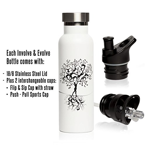 - 18/8 FOOD GRADE STAINLESS STEEL - Involve & Evolve bottle is made of high-quality FDA approved 304 stainless steel. Unlike any low-quality steel, aluminum, or plastic, 18/8 food-grade stainless steel will not leach out any metal taste to your drink and will leave your water odor free.
