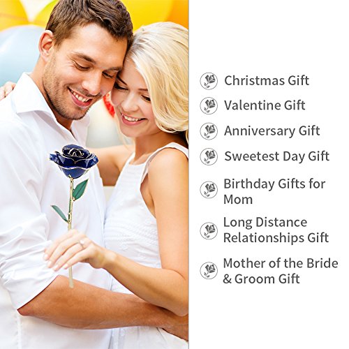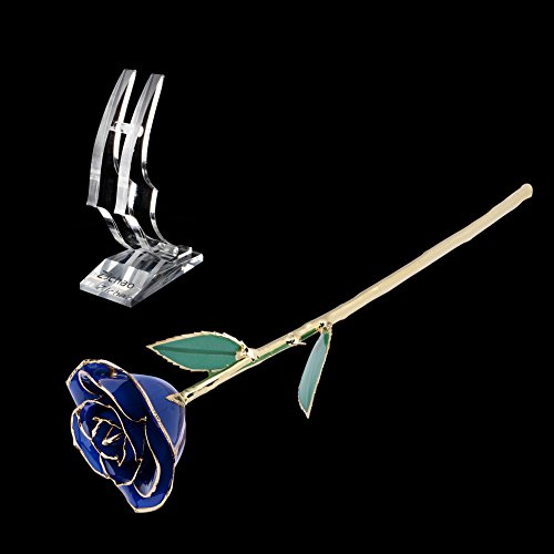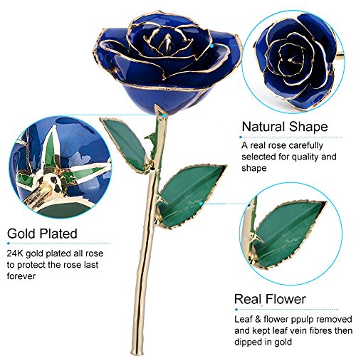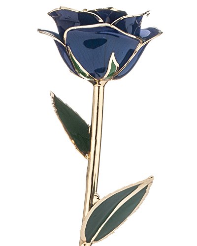 Tell her you love her with this gorgeous red rose. This cherished gift is a real rose dipped in red lacquer and trimmed in genuine 24k gold. This rose is a perfect gift either by itself or combined with any of our other beautiful colors to create a colorful bouquet. With its rich garnet red color, consider this fabulous red rose for a January birthday gift. Each rose measures 11-12 inches long and is packaged in a lovely gold gift box. Red roses signify passion, love, courage, congratulations, honesty and bravery.Feature