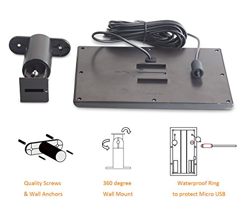 ? 360 DEGREE MOUNT - Our unique 360-degree wall mount allows you to easily position your solar panel and ensure that it is perfectly positioned to maximize sun light exposure.