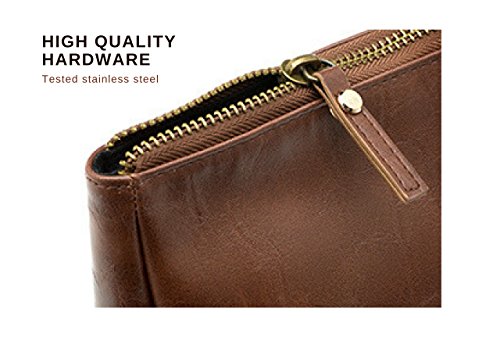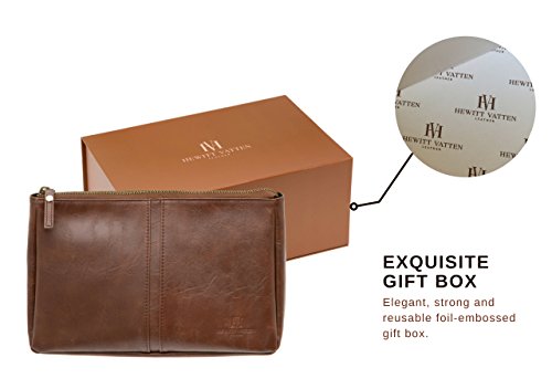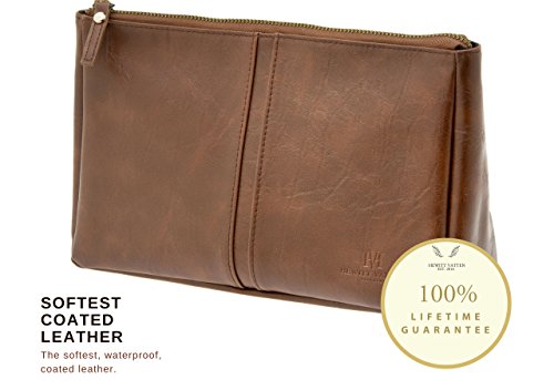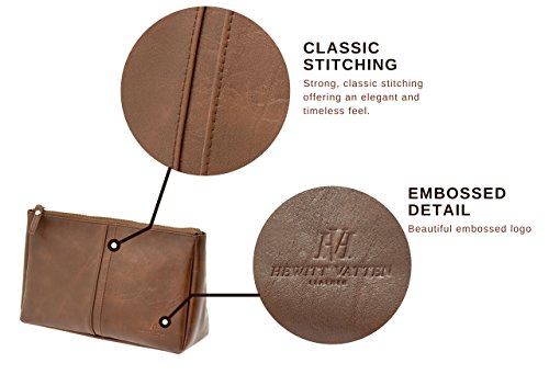 - WATER RESISTANT BI-CAST LEATHER WITH DURABLE STAINLESS STEEL ZIP– Unlike cheap, mass-produced toiletry bags, Hewitt Vatten’s vintage style toiletry bag is made from specifically sourced, embossed bi-cast leather. Treated with a special protective coating to ensure it’s waterproof and easy to clean. It also features a hand-tested stainless steel zip and absorbent inner lining so that you can be sure your bag will last a lifetime.
