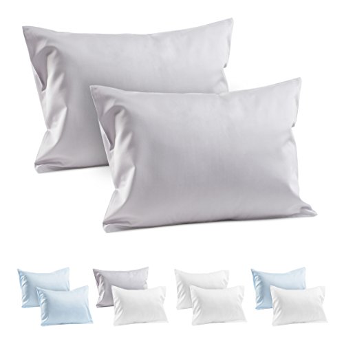 2 Grey Toddler Pillowcases 100% Cotton Sateen Toddler Pillow Case 400 TC Gray Travel Pillowcase Covers 14"x19" or 13"x18" Toddler Baby Travel...