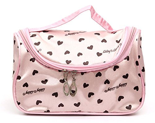 StylesILove Womens Compact Cosmetic Organizer Beauty Essential Makeup Bag (Hearts Pink)