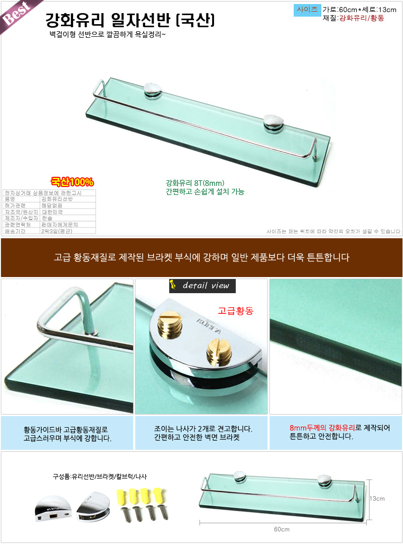 - 품명 및 모델명국산 강화유리일자선반