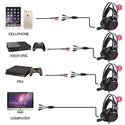 ❄【WIDE APPLICATION】 : This gaming headset with 3.5mm connector is suitable forPC, laptop. And with an extra adapter cable in package, it can also be applied onPS4, Xbox One, PSP, iPhone 6/6 Plus, Samsung S5, S4, LG, Xiaomi, iPad, tablet, etc.