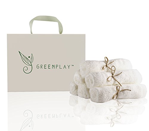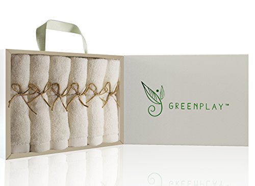 6 Washcloths from Organic Bamboo by Greenplay. Free optional gift box. Soft, perfect baby shower gifts for newborn boys, girls, new mom, or anyone you want to pamper with luxury bath items! 10x10 inch