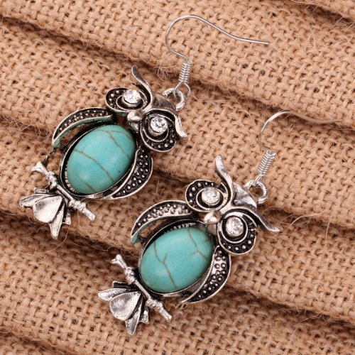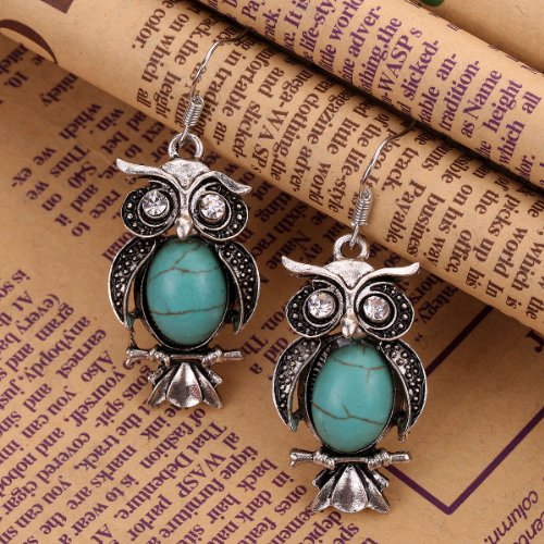 - Title : Yazilind Jewelry Charming Crystal Tibetan Silver Turquoise Owl Drop Dangle Earrings for Women & Girls