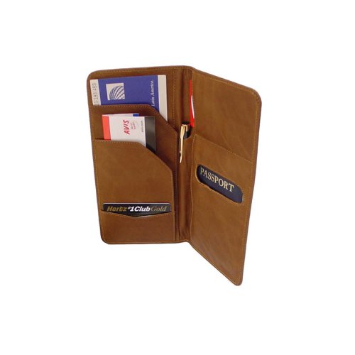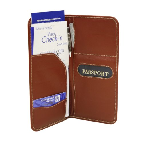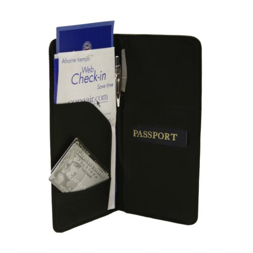 Product DescriptionTwo flap pockets to hold tickets, etc. Large double open pocket for passport, small open pocket for cards or id, center pen holder, and an additional open pocket. Back slit pocket for tickets, etc.0