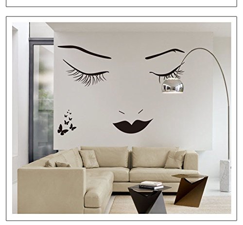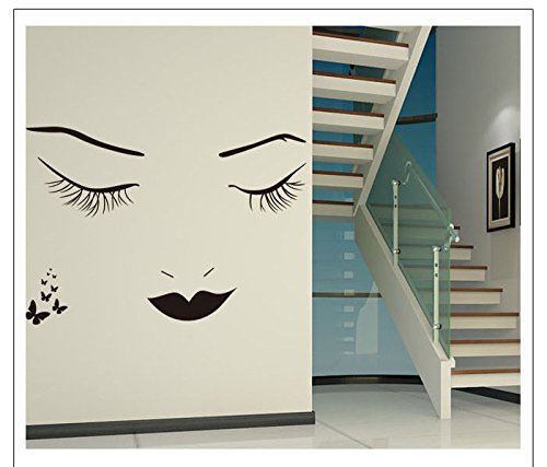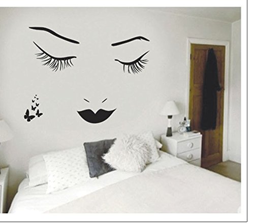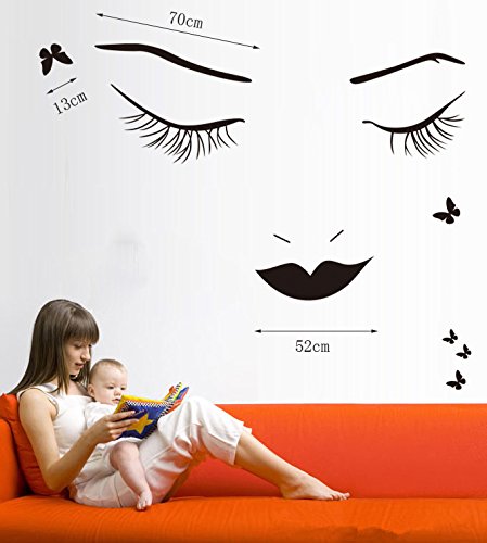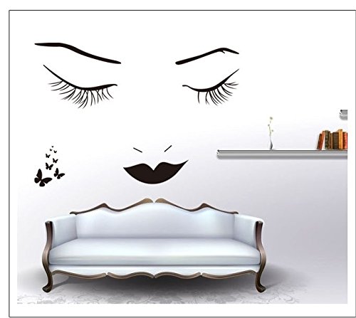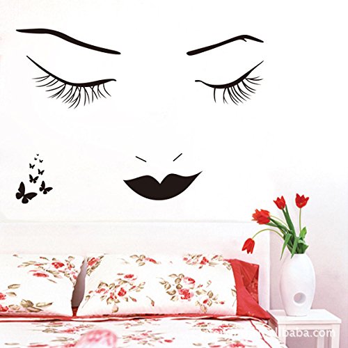 Black Long Eyelashes Lip Beauty Wall Stickers DIY Mural Art Decal Self Adhesive Removable PVC Wall Paper Decor for Bedroom Living Room