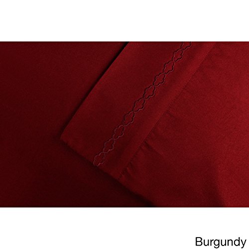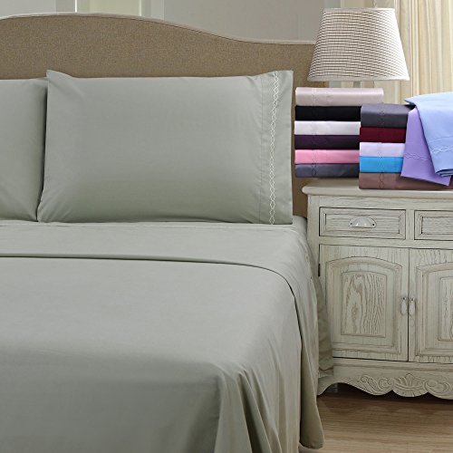 Studio : Home City Inc Publisher : Home City Inc Product Description Drift into a peaceful slumber under these soft, embroidered sheets. Featuring beautiful giftbox packaging , this sheet set has the look and feel of the perfect gift.Set includes: One flat, one fittedWeave: PlainSheet type: SolidFitted sheet pocket depth: 15 up to 18 inchesFully elasticized fitted sheet: YesColor options: Aqua, Burgundy, Black, Charcoal, Ivory, Light Blue, Lilac, Pink, Plum, Sage, Silver, Tan, Taupe, WhiteTheme: Cloud EmbroideryGender: UnisexMaterials: 100-Percent MicrofiberCare instructions: Machine washableFull dimensions:fitted sheet: 54 inches wide x 75 inches longflat sheet: 81 inches wide x 96 inches longQueen dimensions:fitted sheet: 60 inches wide x 80 inches longflat sheet: 90 inches wide x 102 inches longKing dimensions:fitted sheet: 78 inches wide x 80 inches longflat sheet: 108 inches wide x 102 inches longCalifornia King dimensions:fitted sheet: 72 inches wide x 84 inches longflat sheet: 108 inches wide x 102 inches longTwin dimensions:fitted sheet: 38 inches wide x 75 inches longflat sheet: 66 inches wide x 96 inches longTwin XL dimensions:fitted sheet: 38 inches wide x 80 inches longflat sheet: 66 inches wide x 100 inches long 0