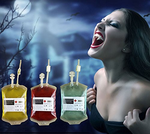 DarNio Clear Food Grade PVC Material Reusable Blood Energy Drink Bag Halloween Pouch Props Vampire for party-5P