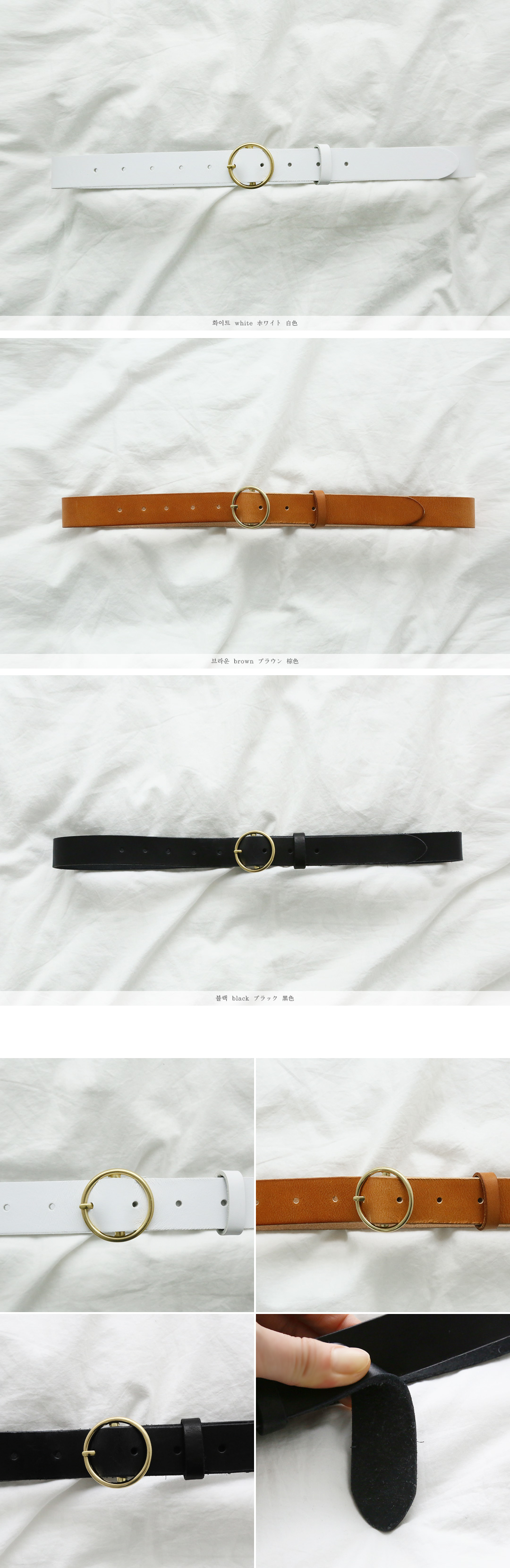 심플한 디자인으로 어디에나 두루두루 잘 어울려 데일리아이템으로 좋은 벨트를 소개할게요소가죽소재로 고급스러운 텍스쳐를 자랑하는 아이템인데요 버클부분 골드컬러의 써클링으로고급스러운 포인트를 주었답니다 적당한 폭으로 부담없이 착용하실 수 있구요베이직한 디자인으로 소장가치가 높은 아이랍니다3가지 컬러로 구성되어있으니 취향에 맞게 서둘러 초잇하세요