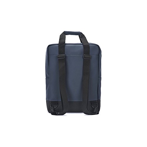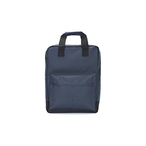 Studio : Rains Publisher : Rains Binding : Apparel Product Description Scout Bag is a classic version of the practical daypack. With a large inner compartment, a padded laptop pocket in the back and a zipped front pocket, Scout Bag makes for an ideal backpack for daily usage. Compartments/pockets: One main compartment with one laptop pocket Volume: 12,3 Liters or 3,5 US Gallons Measurements: H 45 cm x W 30,5 cm x D 13 cm Fabric column pressure: 8000 mm 50% polyurethane, 50% polyester Two adjustable shoulder straps 0