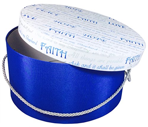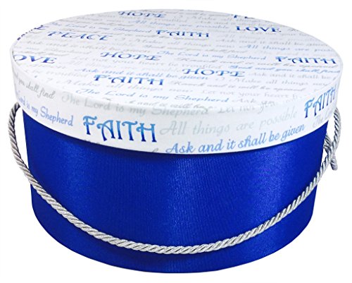 L'ARTISANE BOX INSPIRING FAITH PEACE WORDS ON WHITE COTTON BACKING WITH ROYAL BLUE BENGALINE BOTTOM