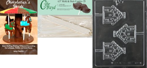 Cybrtrayd 'Gingerbread House Lolly' Christmas Chocolate Candy Mold with 25 4.5-Inch Lollipop Sticks and Chocolatier's Guide