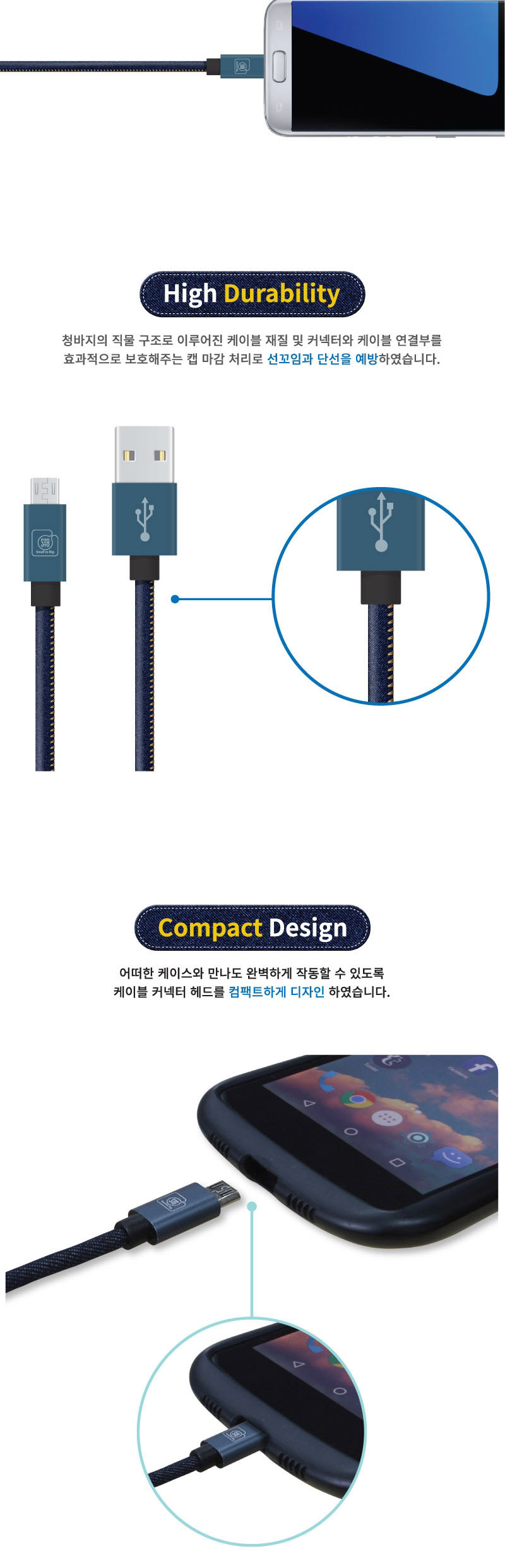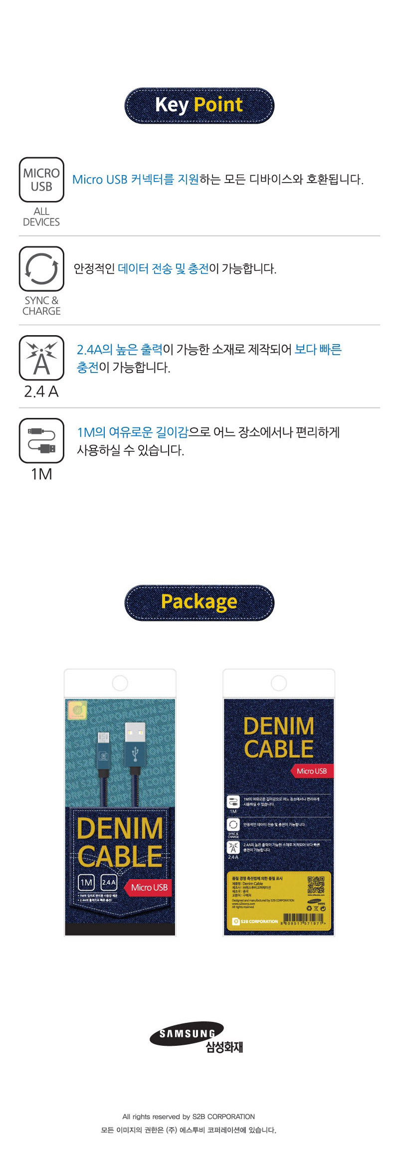 - 품명 및 모델명S2B 데님 마이크로5핀 데이터 케이블 고속충전 2.4A