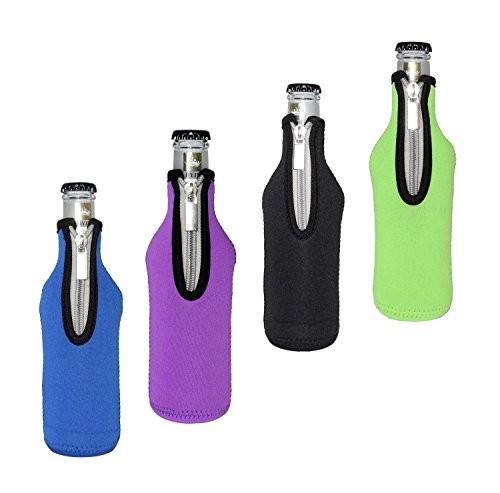 Beer Bottle cooler - Premium Pack of 4 Assorted Collapsible cooler - Green, Blue, Purple ,Black- Extra Thick Neoprene with Stitched Fabric Edges