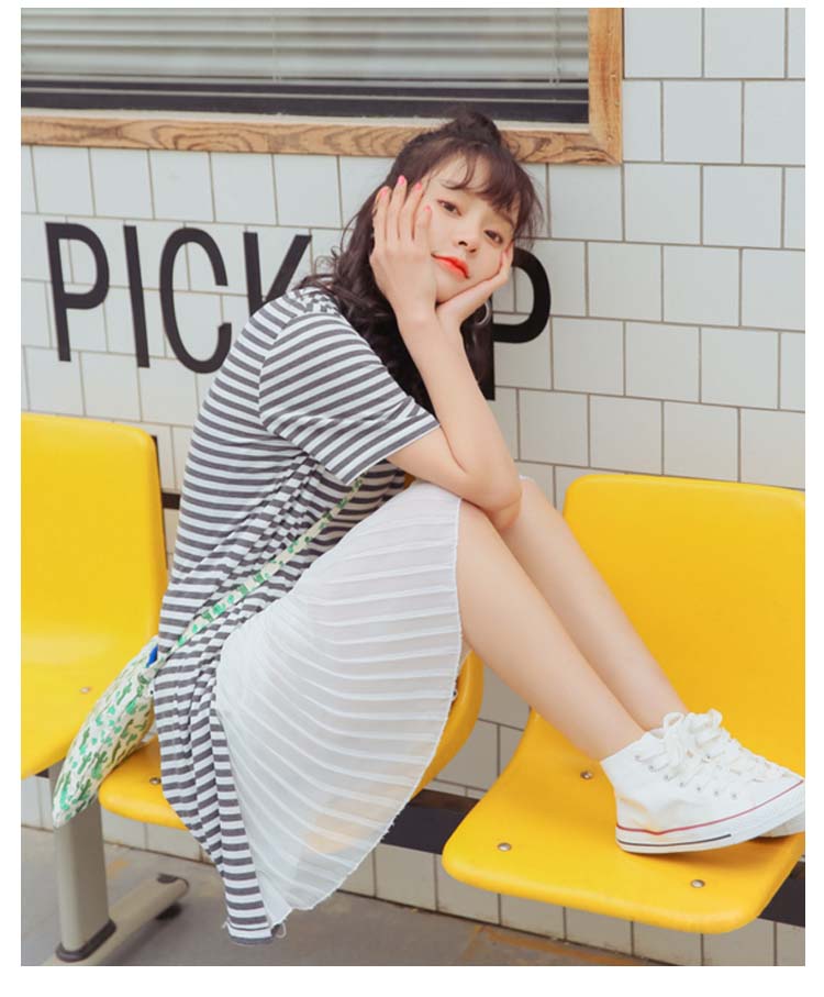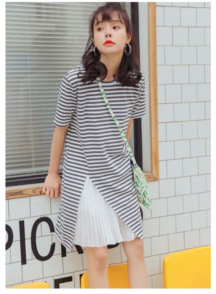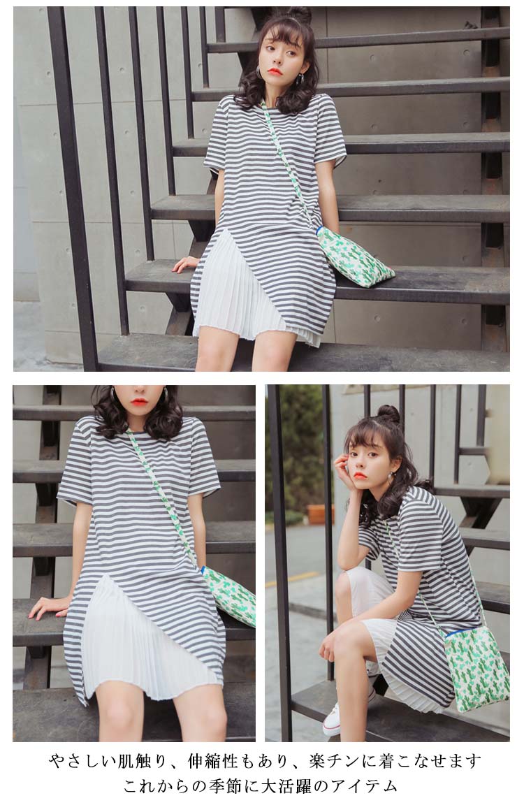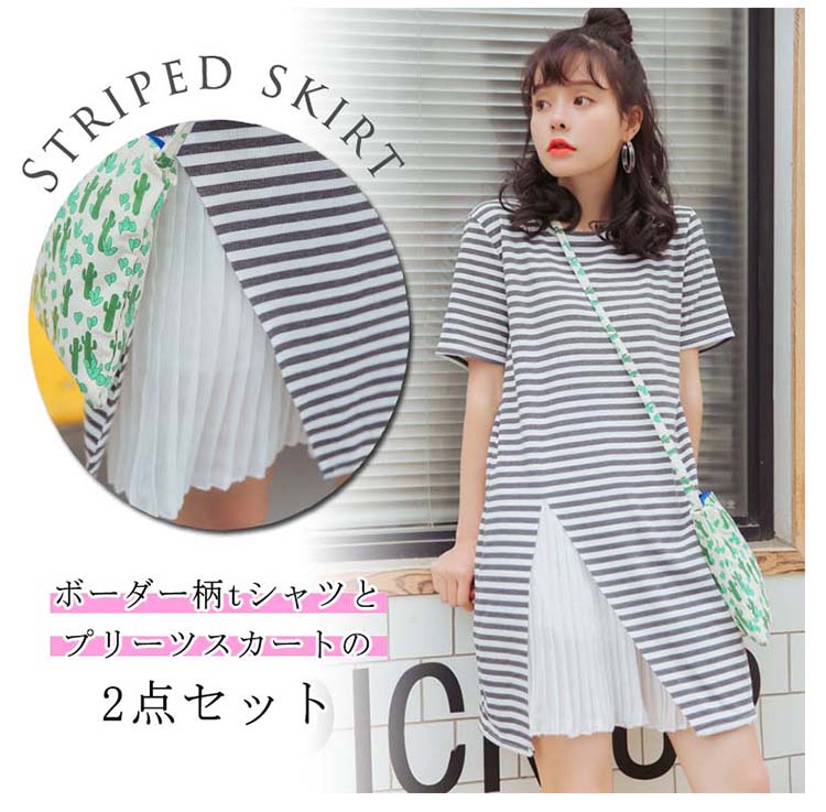 | ボーダー柄tシャツとプリーツスカートの2点セットお部屋着など様々な場面で活用OKやさしい肌触り、伸縮性もあり、楽チンに着こなせますこれからの季節に大活躍のアイテム | |