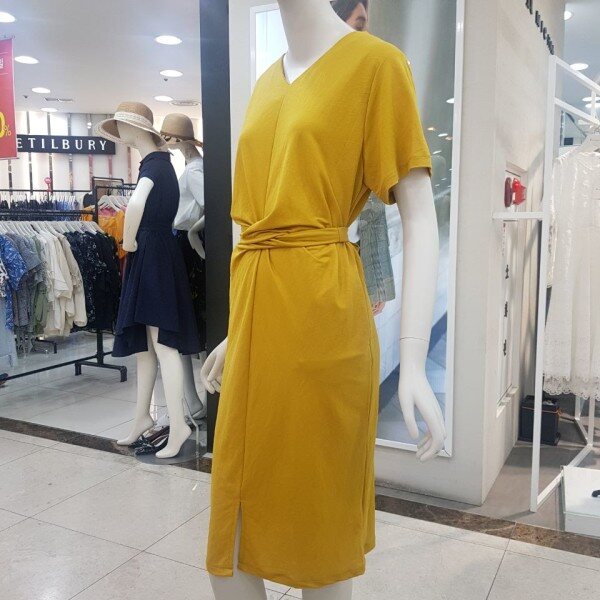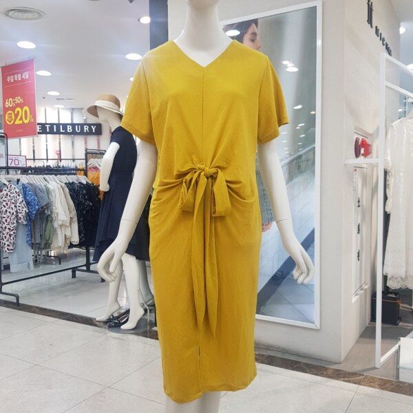 여성스러운 트위스트 리본 디테일 원피스입니다.미디엄 기장으로 착용했을때 안정감 있어 보이는 실루엣으로고급스럽고 여유있는 핏에 허리에 리본 디테일이여성스럽게 연출하기 좋은 멋스러운 원피스입니다. 컬러 : 블루, 머스타드 사이즈 : FREE