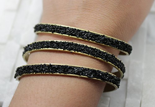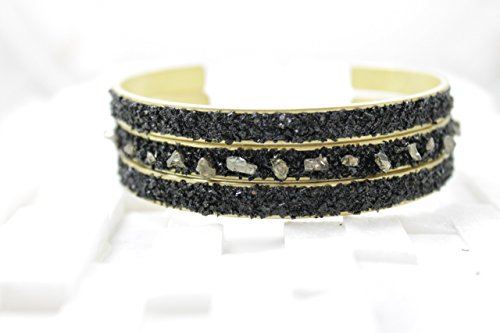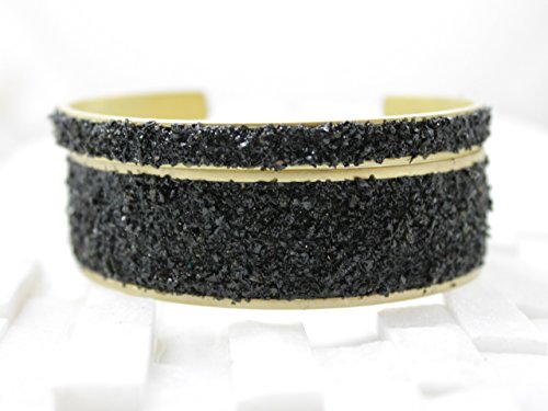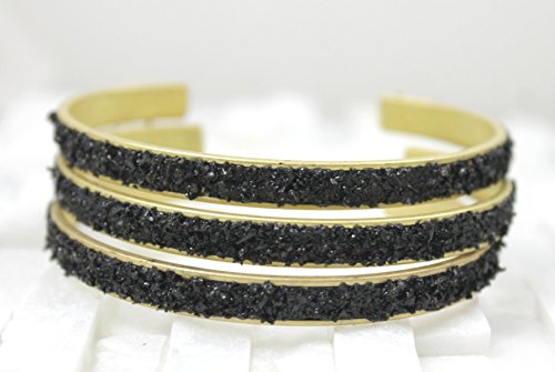 -. Title : Black Cuff Crushed Druzy Bracelet narrow