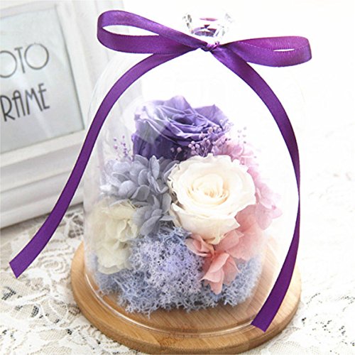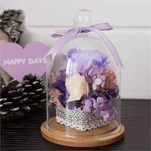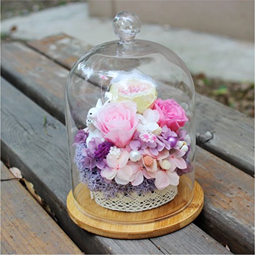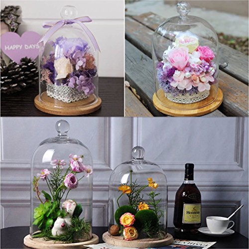 Glass Display Cloche Bell Jar Dome Flower Immortal Preservation Vase Wooden Base(919cm)