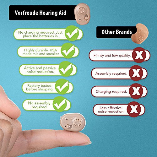 Studio : Vorfreude Publisher : Vorfreude Binding : Misc. Product Description Would you like to buy one quality Vorfreude Hearing Amplifier, and never have to worry about it breaking? With the Vorfreude Lifetime Replacement Guarantee you can enjoy the freedom that comes with quality that is guaranteed for life. The top-quality USA made wafer microphone and speaker are integrated into the Vorfreude Hearing Amplifier to reduce annoying chirping, high pitch squealing and other common issues with inferior internal parts. The active and passive noise cancellation further ensures the sounds being amplified are clear and easy to interpret. Since most hearing aids suffer from interference or feedback when using a cell phone we use a wide range of cell phones to ensure our hearing aids work prefectly regardless of size and positioning of your cell phone. Studies show even slight hearing problems reduce your earnings potential, increase your chances of dementia, social isolation and even your likelihood of falling. Why take those risks when for 90% less than a custom device you can get a Vorfreude that does not require appointments, prescriptions, fittings or any other inconveniences. Vorfreude helps improve speech intelligibility, increases your confidence, and reduces fatigue associated with the inability to hear what you want leading to an improved quality of life. Vorfreude does not just "turn the volume up" like those cheap devices, it enhances the world around you discreetly. The 14 band digital sound processing focuses on voices while simultaneously reducing background noise through active and passive noise cancellation. Just imagine, no more asking people to repeat themselves, no more turning the TV up and up, no more misunderstandings not only words but also emphasis, nuance, and volume... The longer you wait to address your hearing the less chance you have of preventing a decline. The time to get a Vorfreude is now. Just think this time next week you could be hearing better! Order now. 0