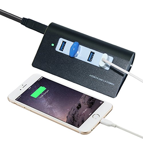 EBOUR Mini 4-Ports 3.0 USB Hub Combo Converter Powered Adapter [Black]