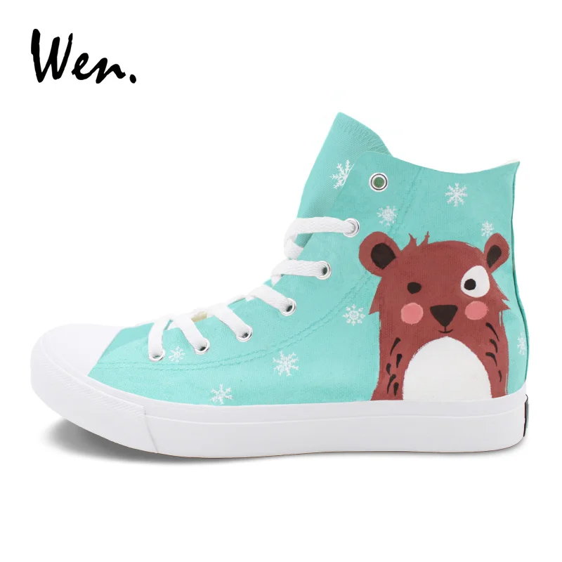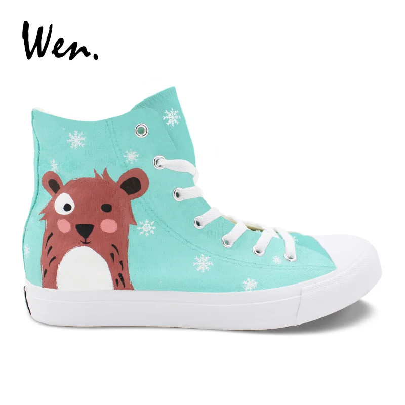 Pattern:Cartoon Bear Snowflake hand painted canvas shoes