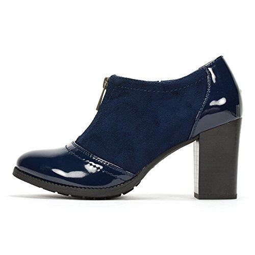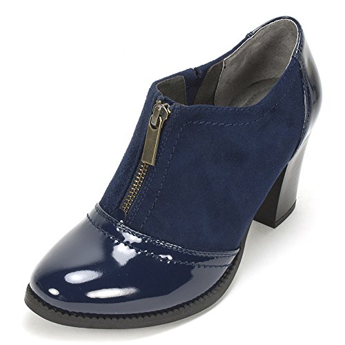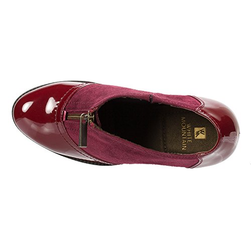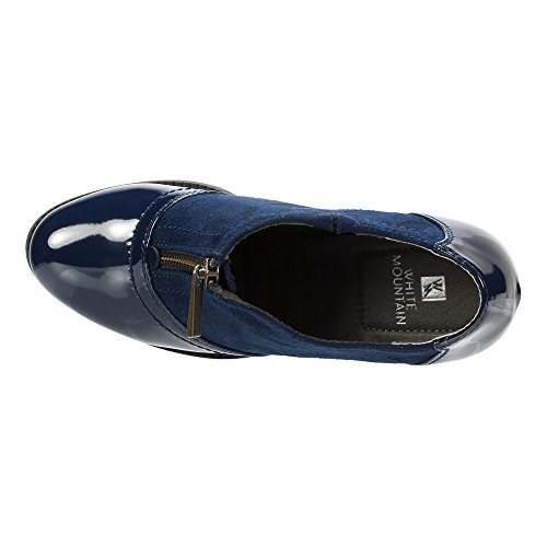 Studio : White Mountain Publisher : White Mountain Binding : Shoes Product Description The pawnee zip - front shootie mixes suedette and patent for a sleek look. the functional zip front and 2 1/2 inch heel height make it fashionable yet practical. a great shoe to dress up or down. 0