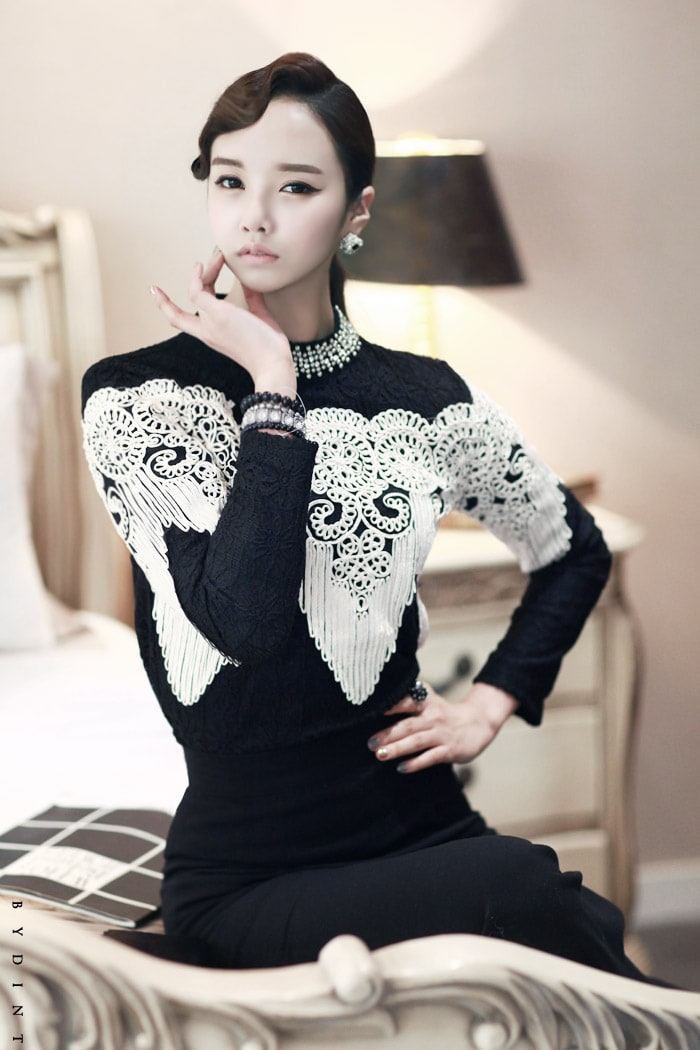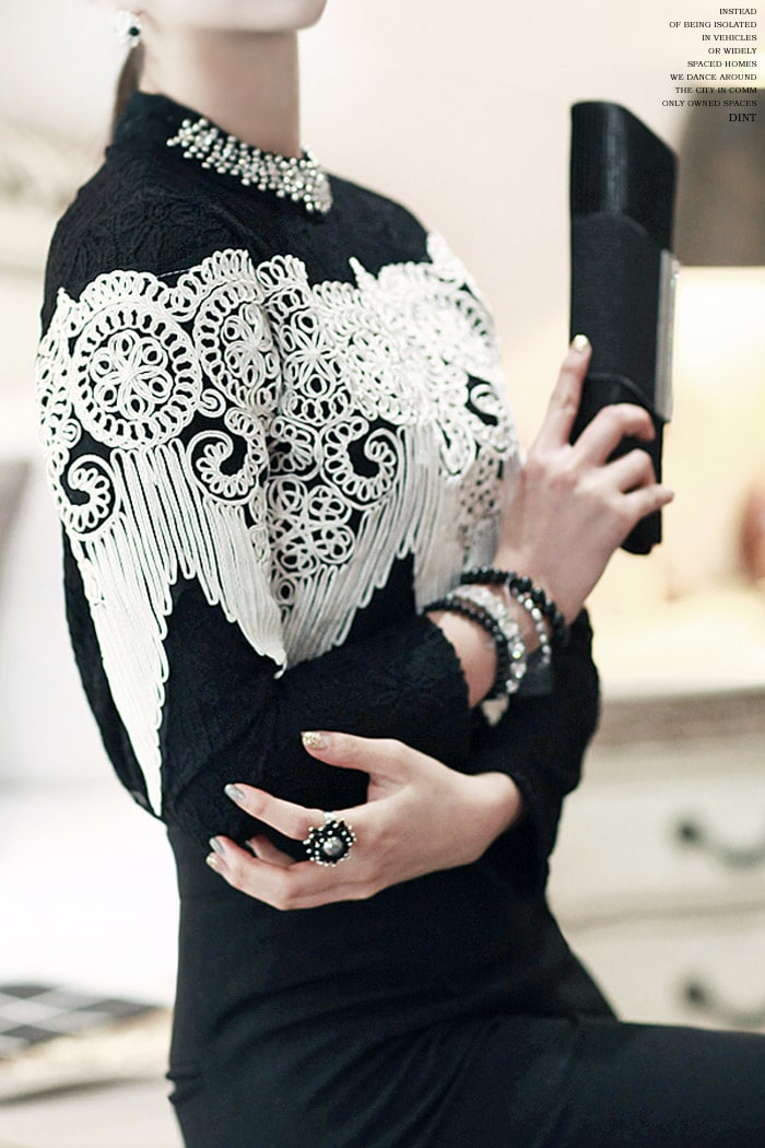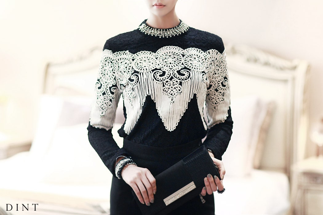 *本製品は製作過程で首の後ろのボタンが真珠のデザインでブラックデザインに変更になりました。