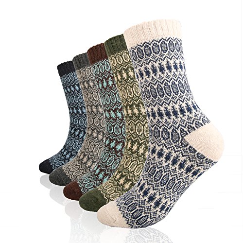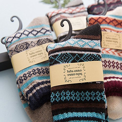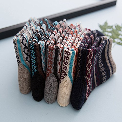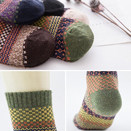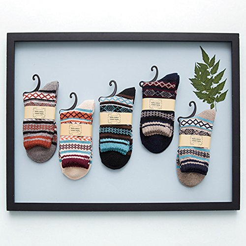 -. Feature : STYLISH DESIGN:These wool socks featured with stylish patterns and vibrant colors, fashionable and stay warm in the cold weather, also a great gift for women and girls / VARIOUS COLORS:5 pairs socks (with mix colors), colorful lifestyle with various socks / SUPERIOR MATERIAL:Acrylic/Cotton/Nylon/Spandex/Wool,comfortable and soft to enjoy your pleasant winter, set you free from the coldness / ONE SIZE: Free size, fits standard shoes size from 5 to 10, available for everyone, suitable for all / COMFORTABLE TO WEAR:Designed with superior material,which will be breathable and easy to dry from sweat, great touch and protection for your feet