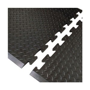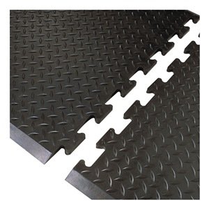 Product DescriptionAntifatigue Mat, Color: Black, Width: 3 ft., Length: 2 ft. 7", Thickness: 1/2", Mat Surface Pattern: Diamond Plate, Material: Rubber, Edges: (3) Beveled, (1) Interlocking End0