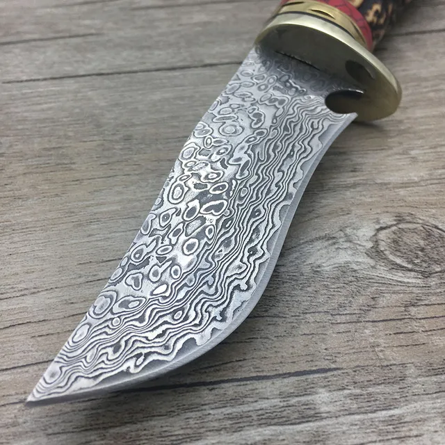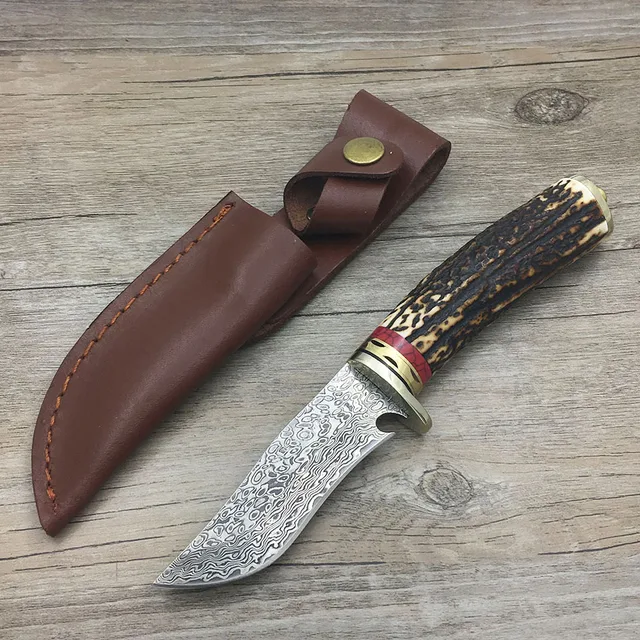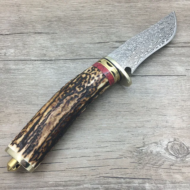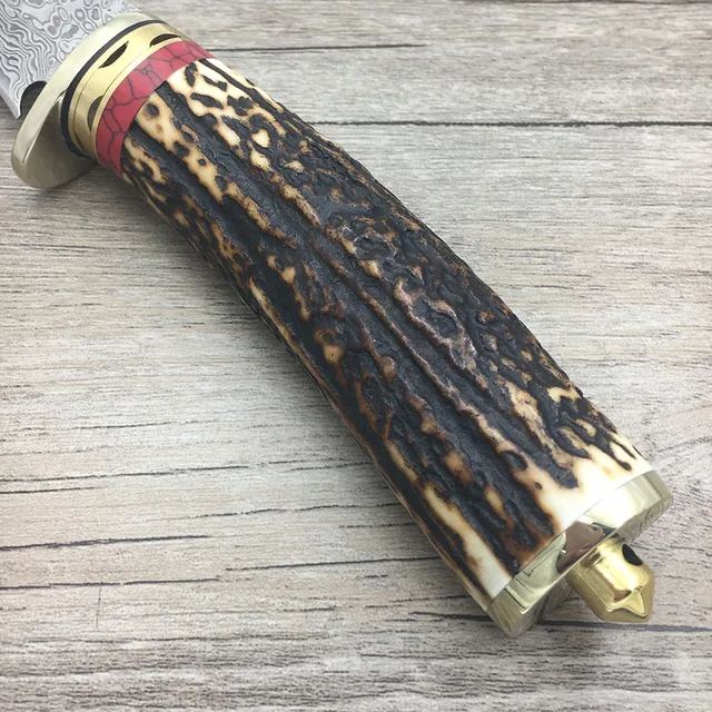 | [해외] 다마스커스 스틸 나이프 블레이드 사냥 칼 뿔 경적 핸들 수제 다마스커스 단조 칼 선물 칼 |