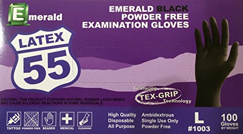 Black Latex Powder Free Disposable Gloves by Emerald (100 gloves)