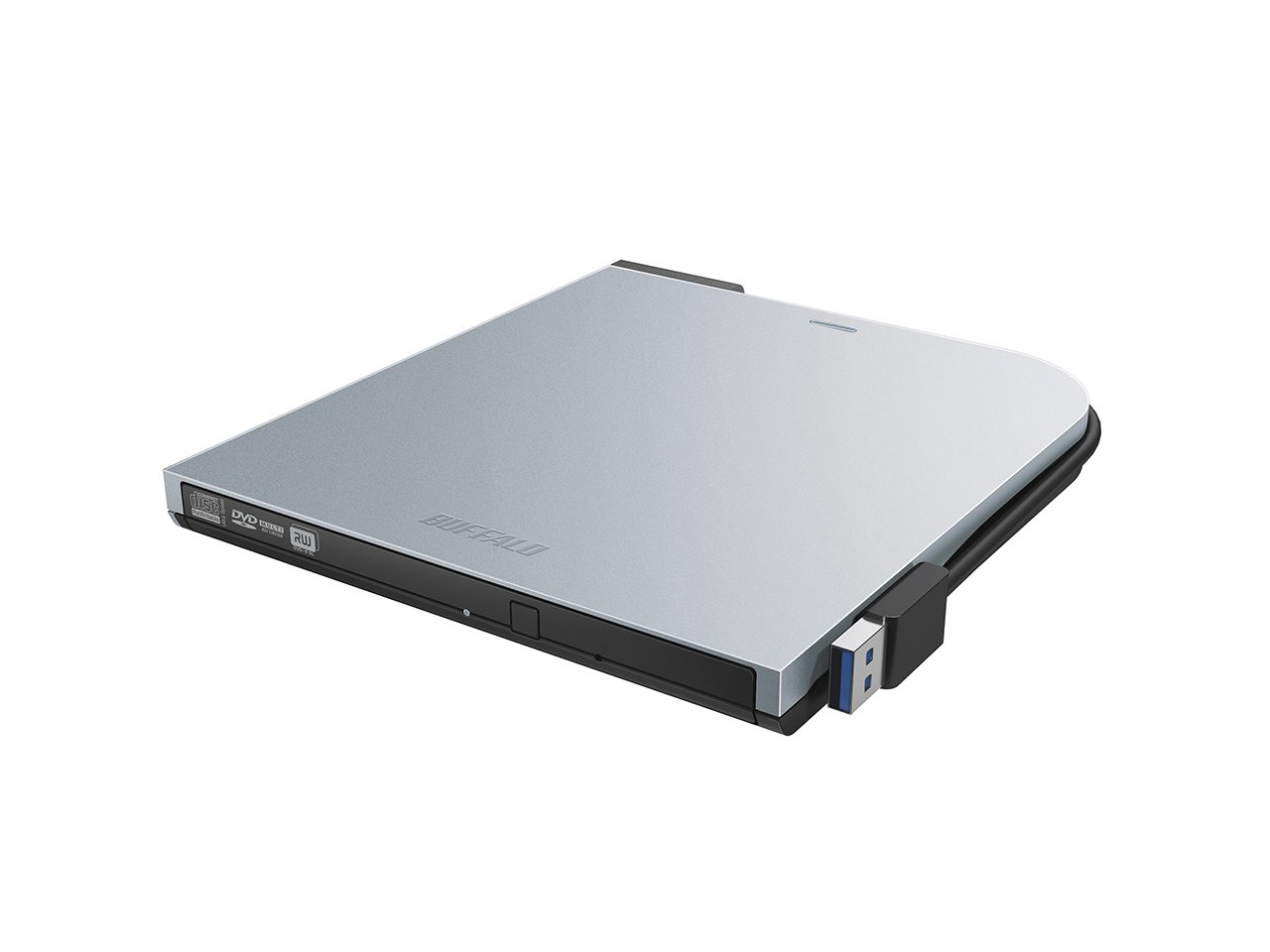 BUFFALO USB3.0 portable DVD drive flat design Ultra Slim W cable storage Silver DVSM-PTS58U3-SV