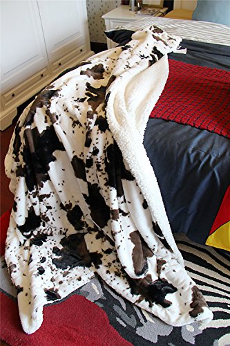 Elegant and luxurious solid white and brown faux fur cow throw blanket with a lovely soft texture on one side and extremely warm and comforting sherpa back side.