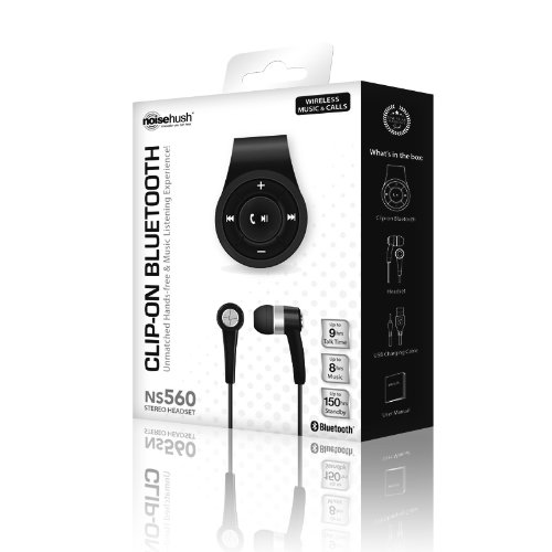 NS560-11977 NoiseHush Clip-On Bluetooth Stereo Headset, Black
