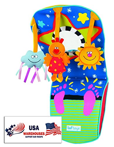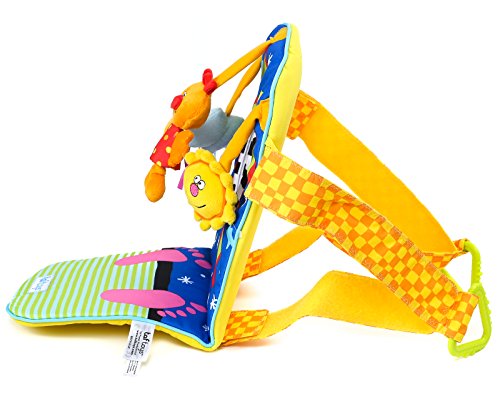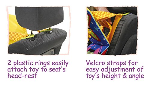 Keep your little one entertained in the car with the Taf Toys Toe Time Infant Car Toy! This original and unique car activity toy assures hours of "quiet" driving. Made of soft, colorful fabrics, it attaches to the seat in front of your child and adjusts easily so they can reach all the fun activities. Features soft dolls, fun characters, and a safe mirror.