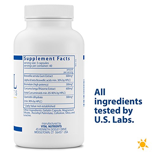 BCQ combines Boswellia and Curcumin extracts with Quercetin, a potent flavonoid, and Bromelain, a proteolytic enzyme derived from the pineapple plant. This powerful formula provides antioxidants and may help reduce substance P levels in the body. In addition, BCQ supports a healthy inflammatory response, which may aid in reducing minor pain. The nutrients in this distinctive formula are also known to support gastrointestinal function and help maintain healthy connective tissue. Vital Nutrients mission is to manufacture superior quality nutraceuticals that exceed both industry and government standards and provide clinically effective results. They provide over 200 science-based and clinically effective products. They have a comprehensive quality assurance program to ensure that purity and potency is consistently met on every product that they manufacture. Vital Nutrients uses independent U.S. ethical laboratories to test all raw materials and finished products. Each raw material is tested, regardless of origin, for purity and potency. All finished products are tested through a real time stability protocol for expiration date validation. They are an FDA Inspected facility that exceeds FDA cGMPs, and a member of the NPA.Feature