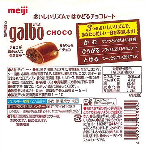 原材料:砂糖、カカオマス、植物油脂、全粉乳、ココアバター、鶏卵、小麦粉、植物油脂加工食品、脱脂粉乳、練乳加工品、ココアパウダー、還元水あめ、加工デンプン、乳化剤、光沢剤、香料、セルロース、膨脹剤、(一部に小麦・卵・乳成分・大豆を含む)