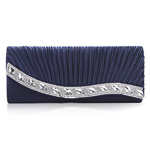 A luxurious women clutch is a Pefect partner for a Gorgeous night when matched with a refined dress.This satin crystal appliques sparkle handbag with a bling rhinestone studded wave trim, elegant design and crafted inner with terylene lining,a patch pocket is inside,it offers just enough room for your most important items such as cash or phone also bring with a detachable silver chain can be used as a cross body bag or a shoulder bag. Womderful gift for women. Approximate Dimensions:10"L X 4"H X 2"W (25.5cm*10cm*5cm), Chain Strap 41.2"(116cm). NOTE: Different people with different measurement,so it may exist 2-3 measurement errors.Hope you will not mind it.Due to monitor variations colors may appear slightly different.Feature