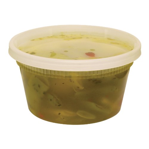 Compare this container to others...This is the preferred type of deli container due to the thickness and microwave tolerance. It is heavy duty and lids are a 'tight' fit. This clear round deli container combo is ideal for serve soups, stews, and deli products like chicken salad, nuts, and many other similar food items. It is made of clear polyethylene that is microwavable and can withstand temperatures from 0 to 250 degrees Fahrenheit, making it ideal for take out!