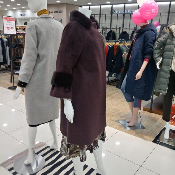 안지크밍크배색코트 알파카 울 함류로 소재가 가볍고 디자인도 멋져요