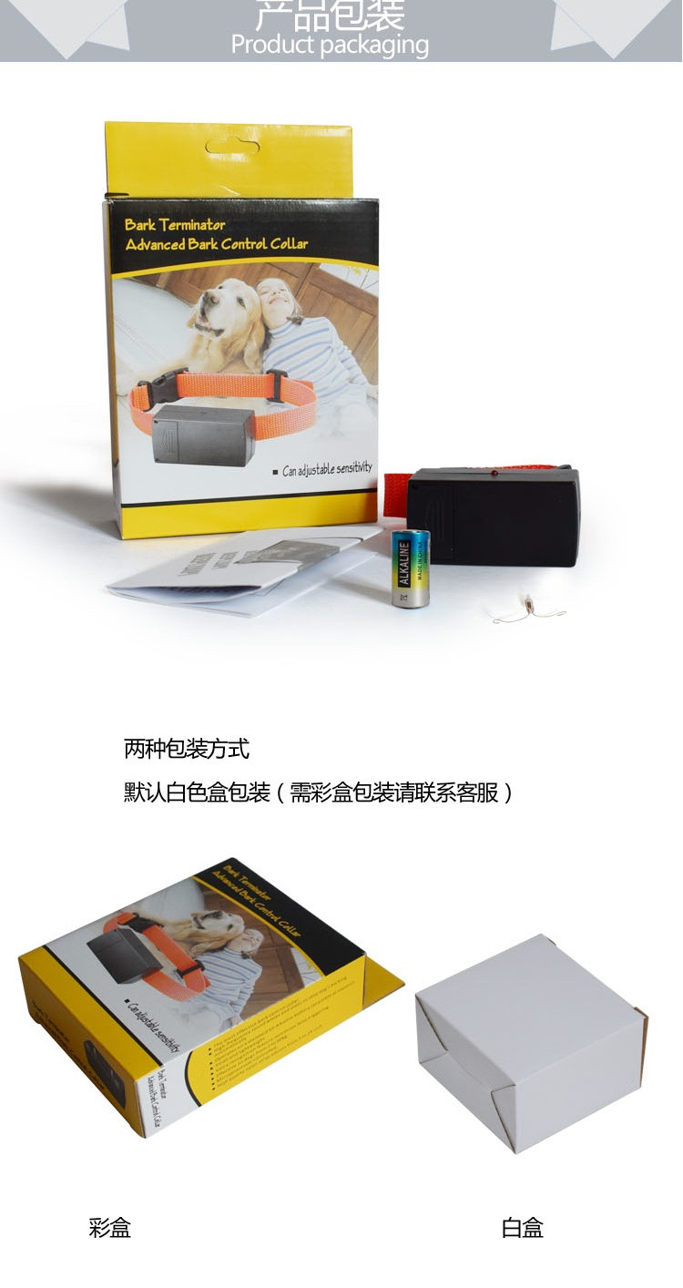 温馨提示:亲们注意下哦:止吠器对大部分狗狗都会起作用!可能会有些个别的狗狗因为不敏感、毛厚等原因,对止吠器没有反应喔!还有胆大、脾气很烈的狗狗,越痛它越叫喔!如果您平时惩罚它打他几下都没什么效果的话,可能止吠不会很理想喔~所以一定要让两个金属柱接触到狗狗的皮肤哦,而且要连叫三声才会产生作用哦!