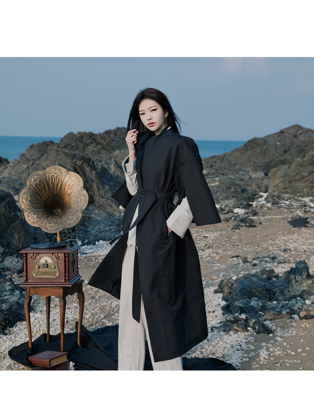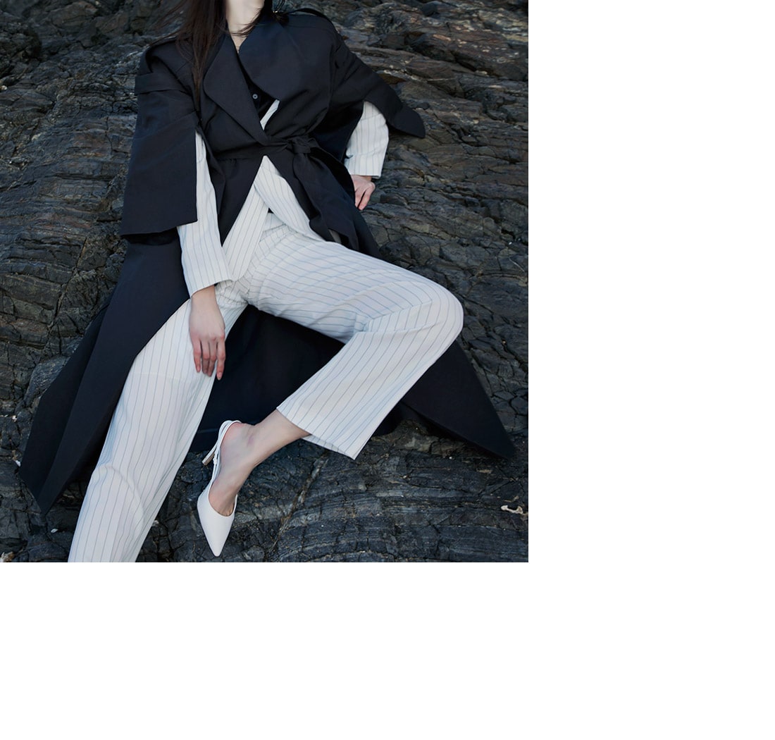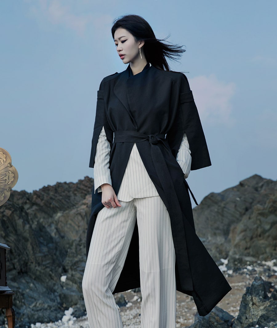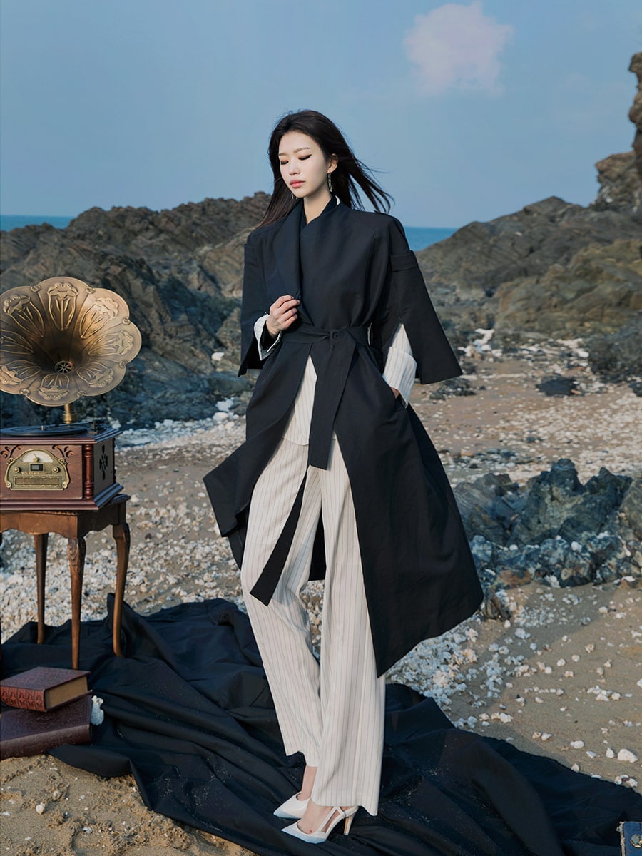 J-4846 배즌 소매 슬릿 트렌치 코트 Black