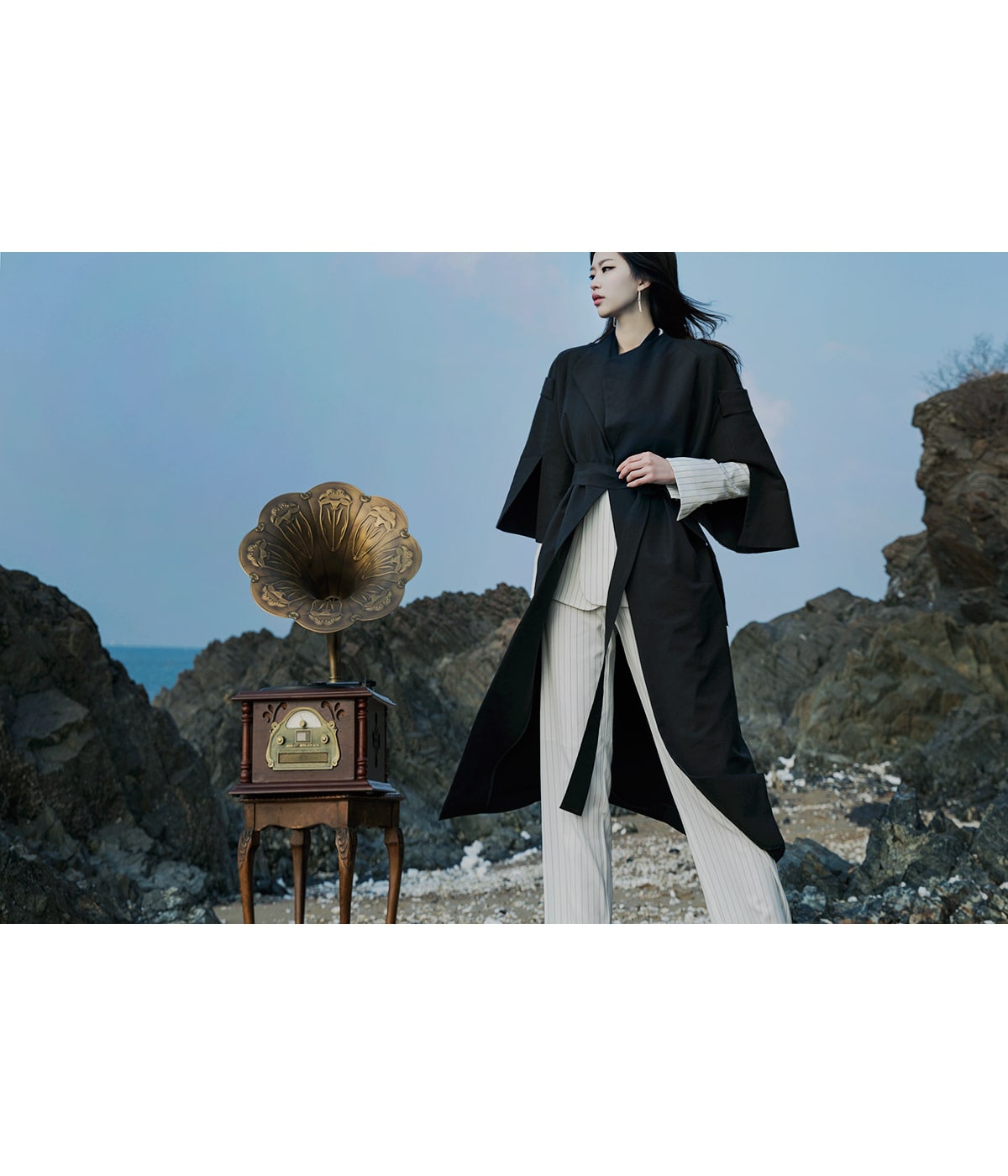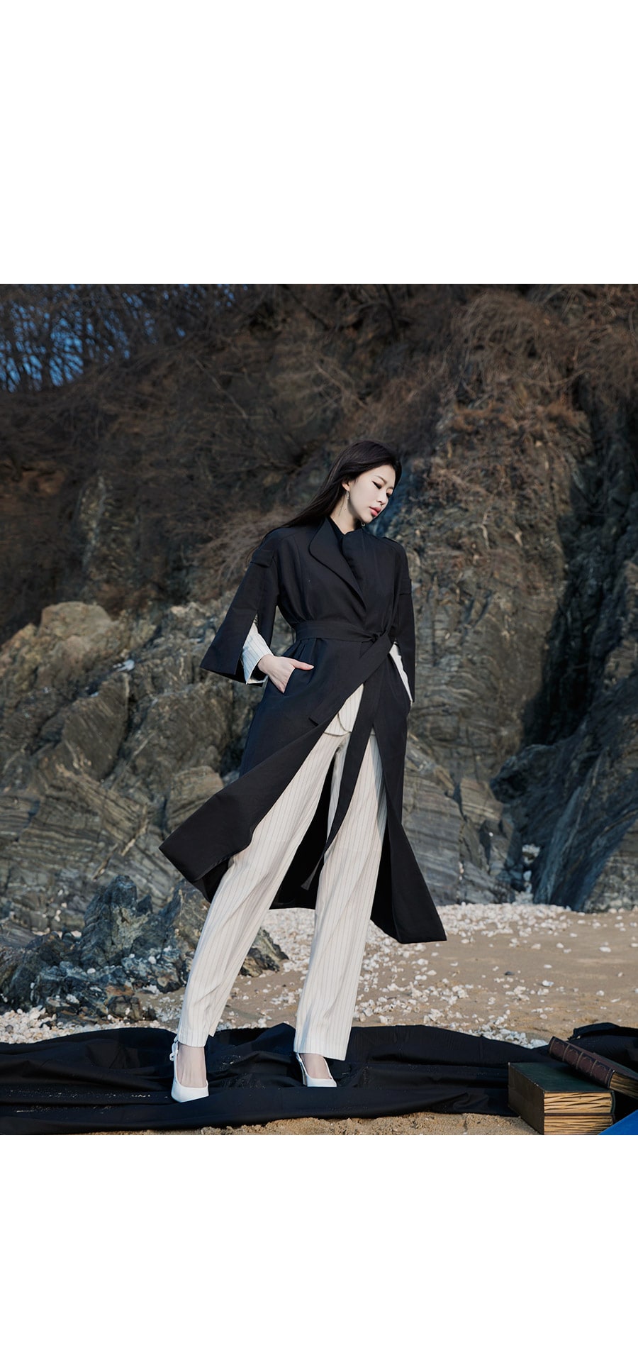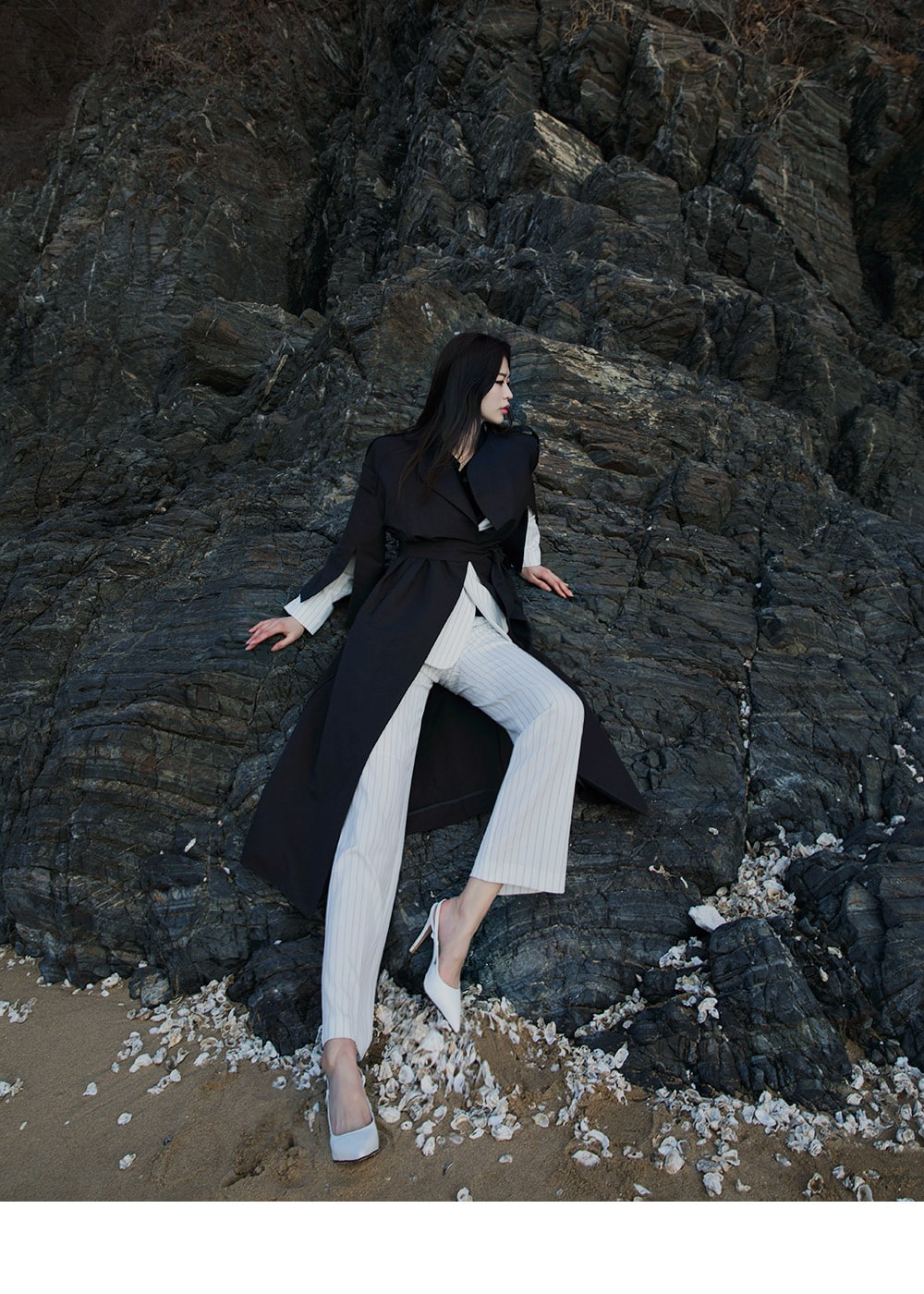 J-4846 배즌 소매 슬릿 트렌치 코트 Black