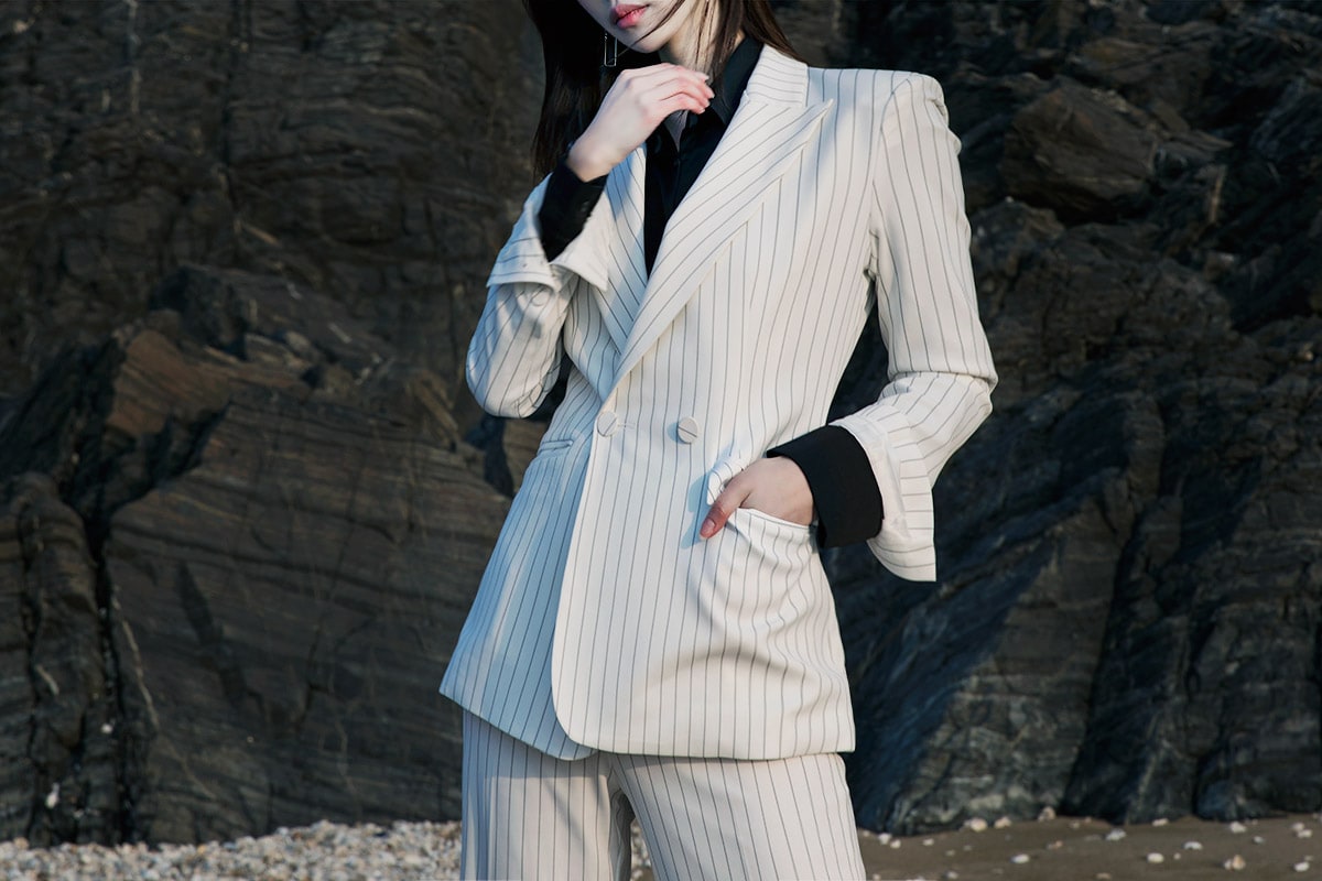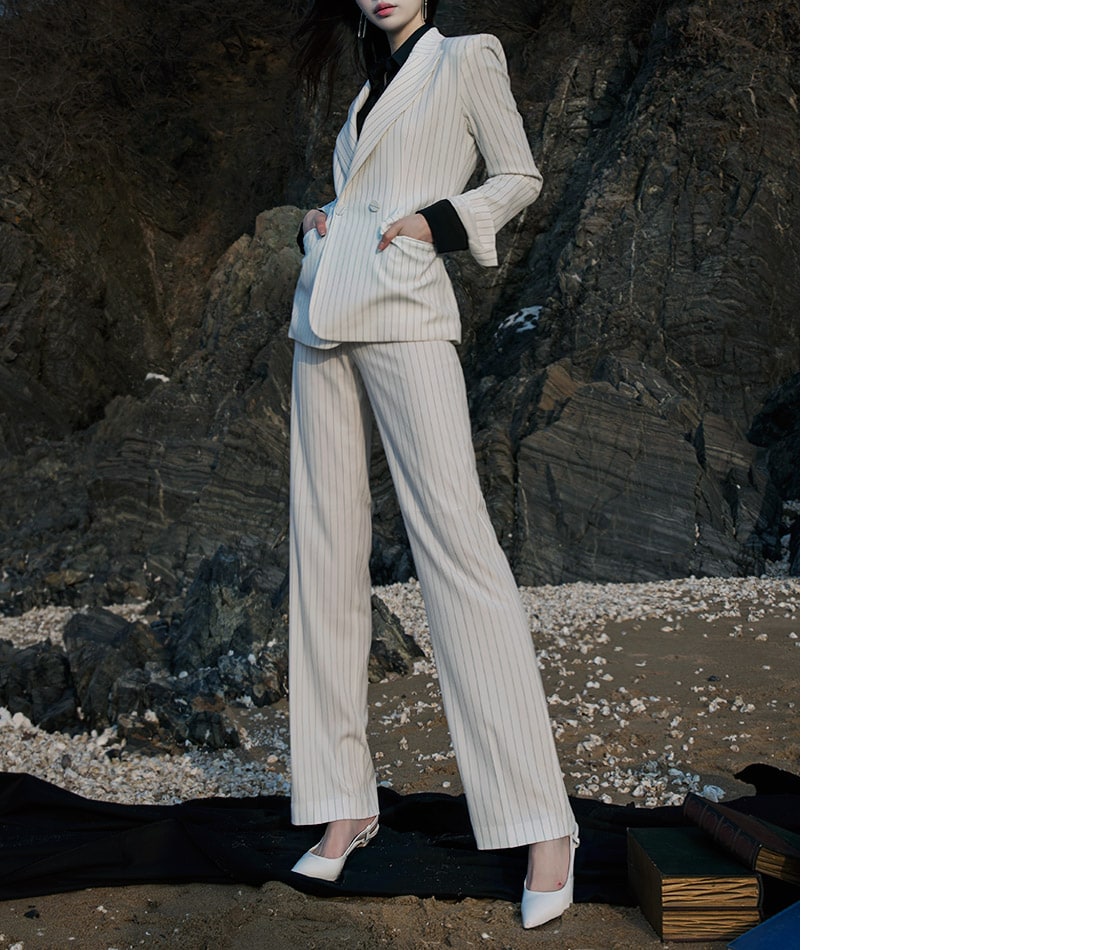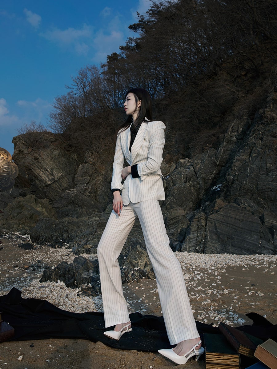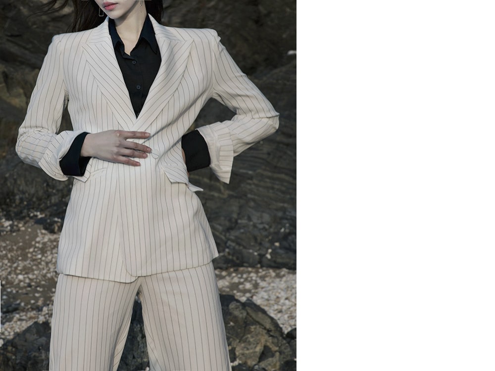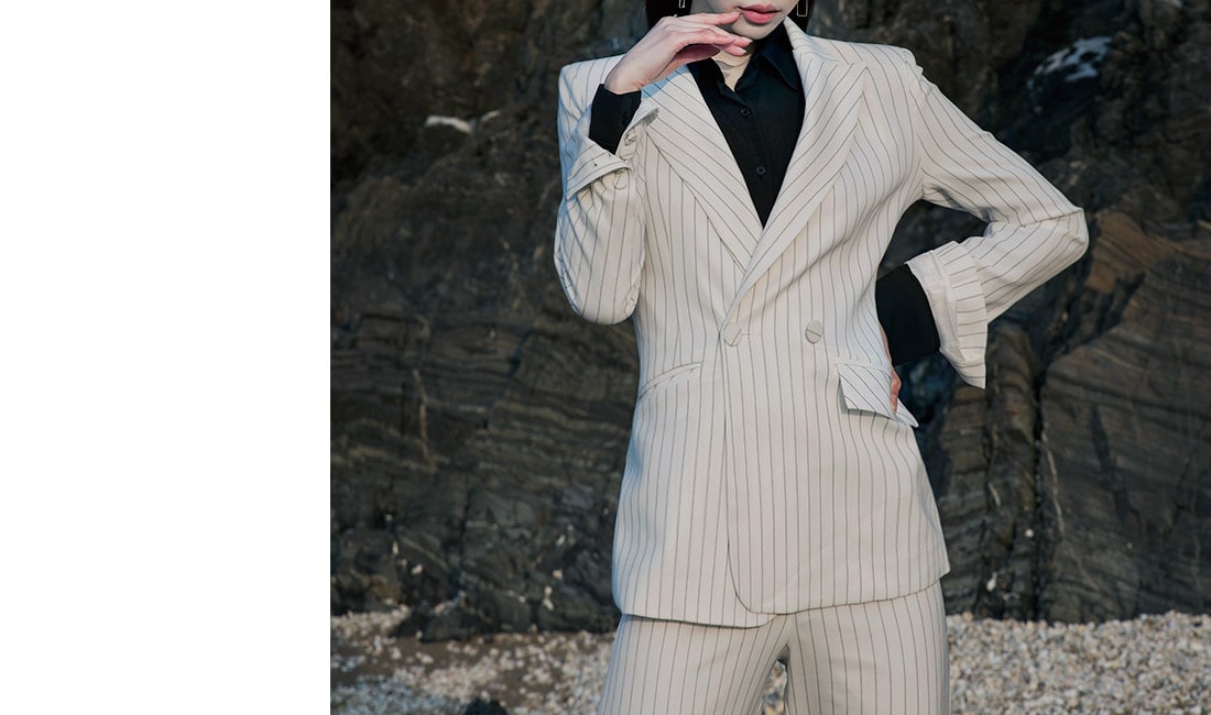 J-4863 모던 스트라이프 테일러드 자켓 Ivory st