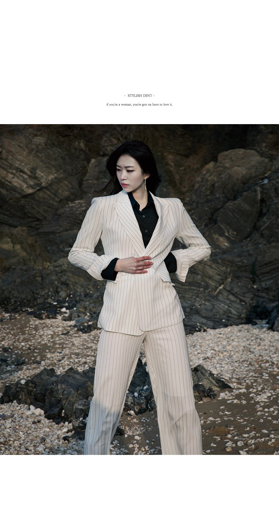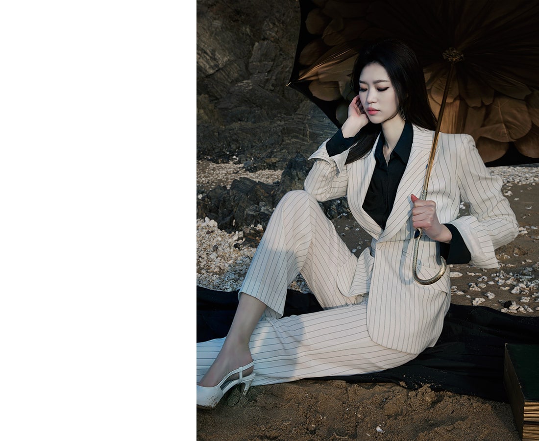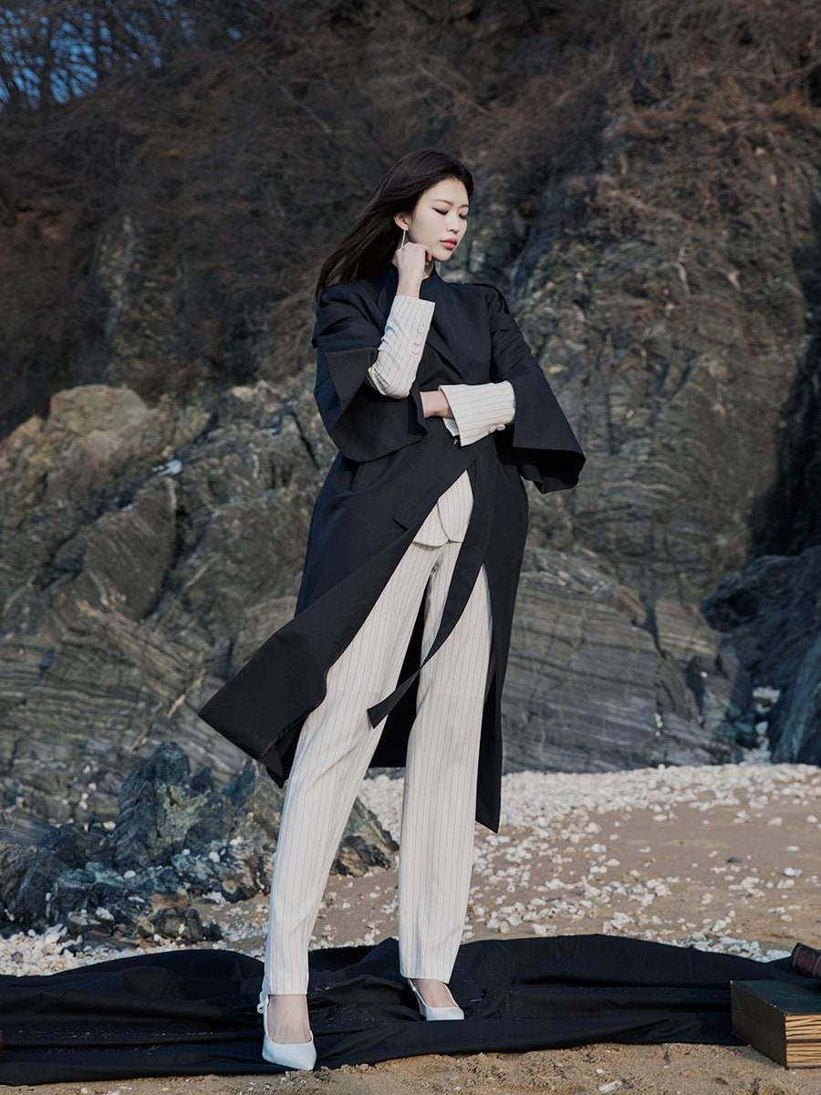J-4863 모던 스트라이프 테일러드 자켓 Ivory st