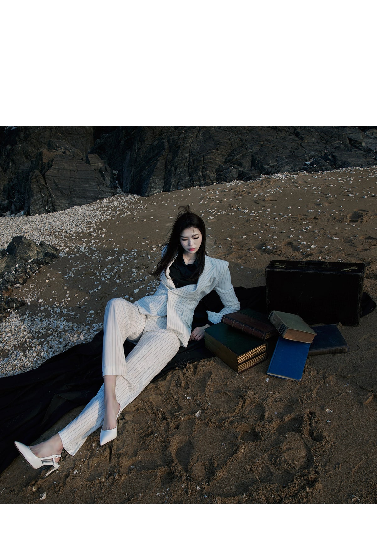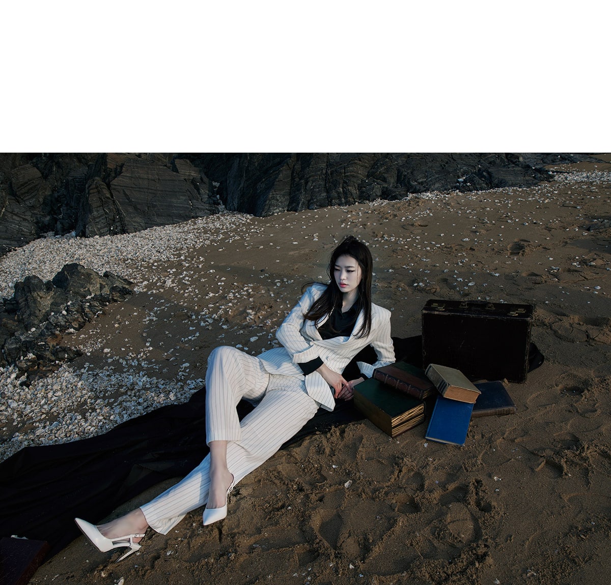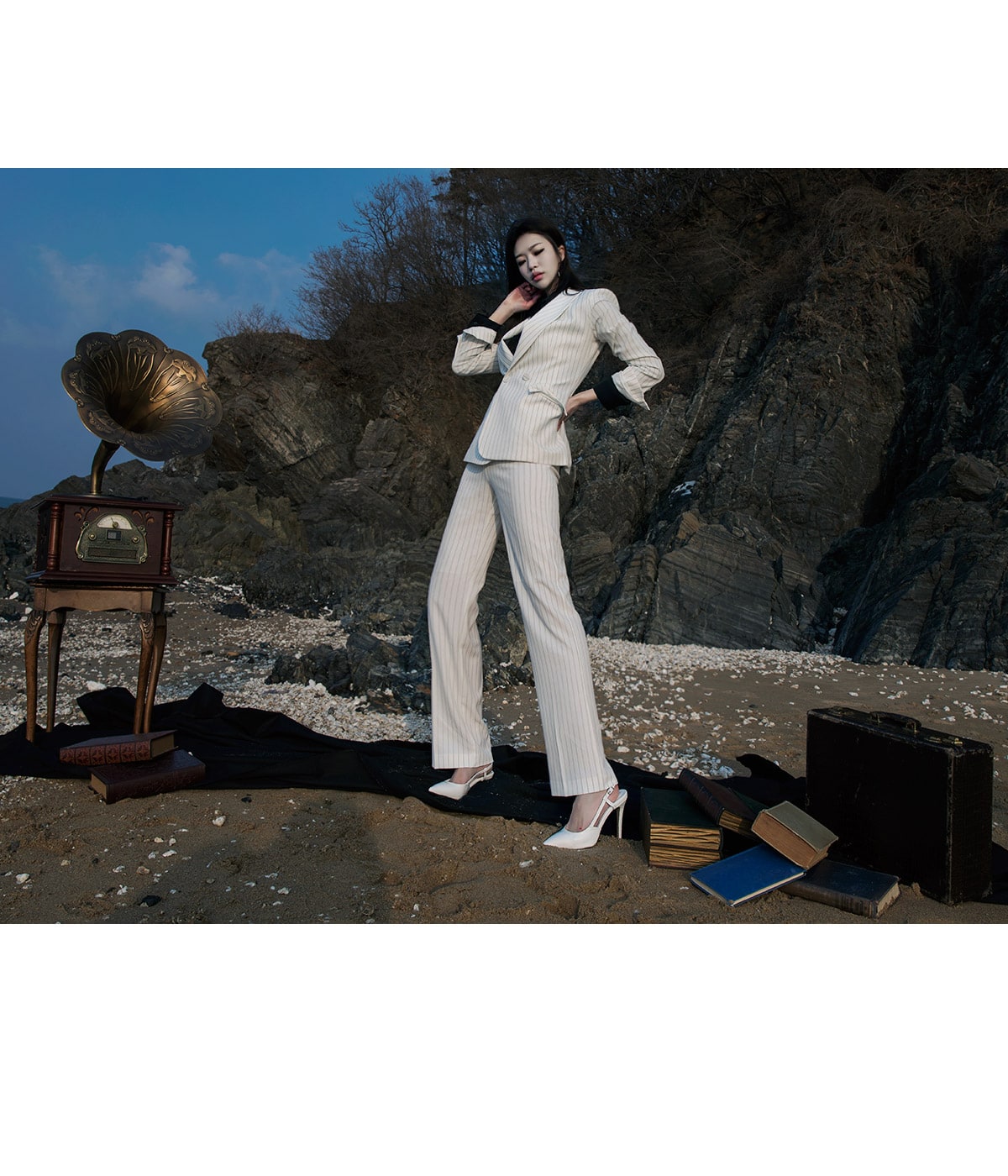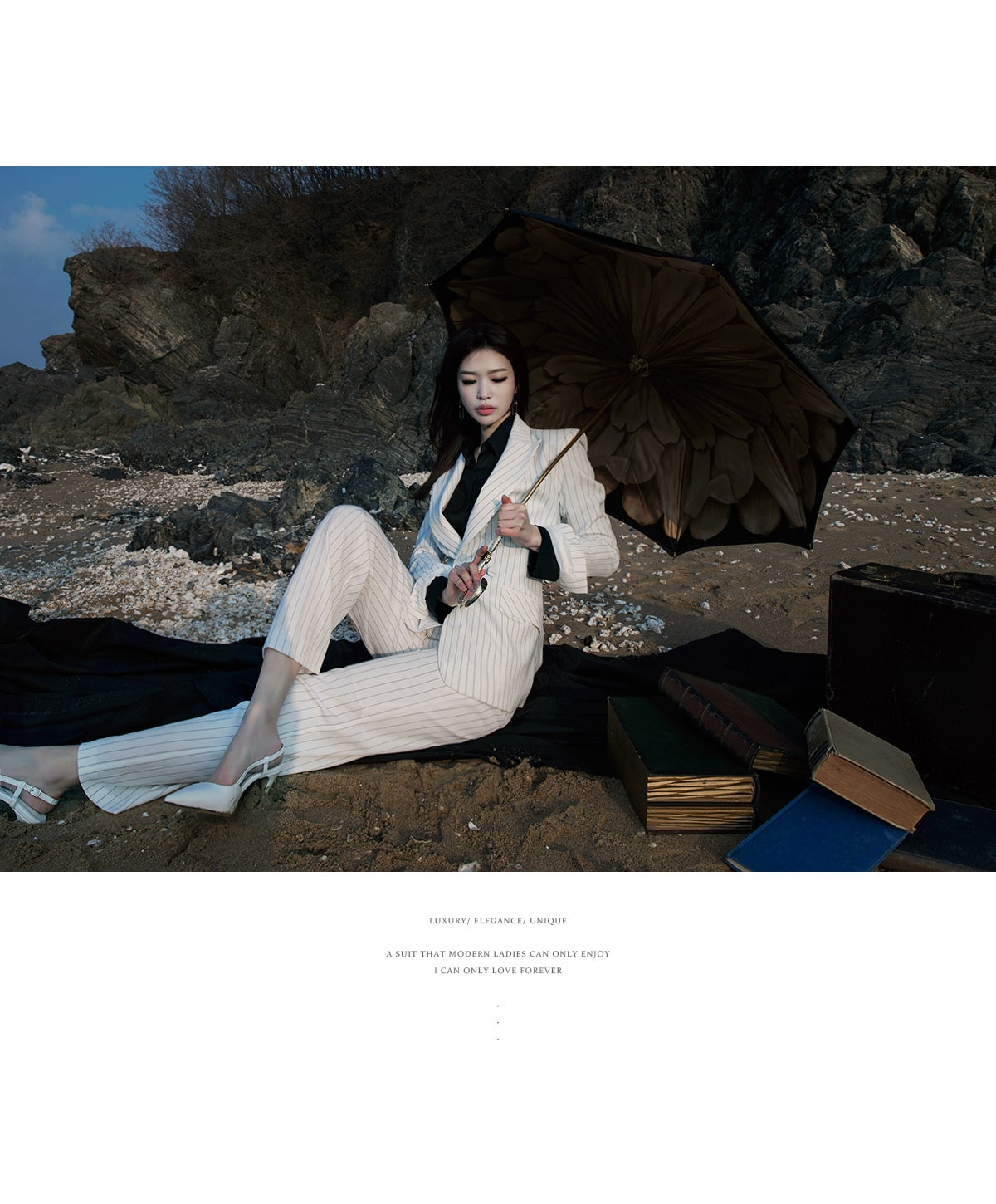 J-4863 모던 스트라이프 테일러드 자켓 Ivory st