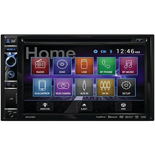 Dual DV625BH Car Double DIN DVD Player W/Bluetooth Audio, USB/Aux Inputs, iPhone/Android Dual Mirror Screen Capability